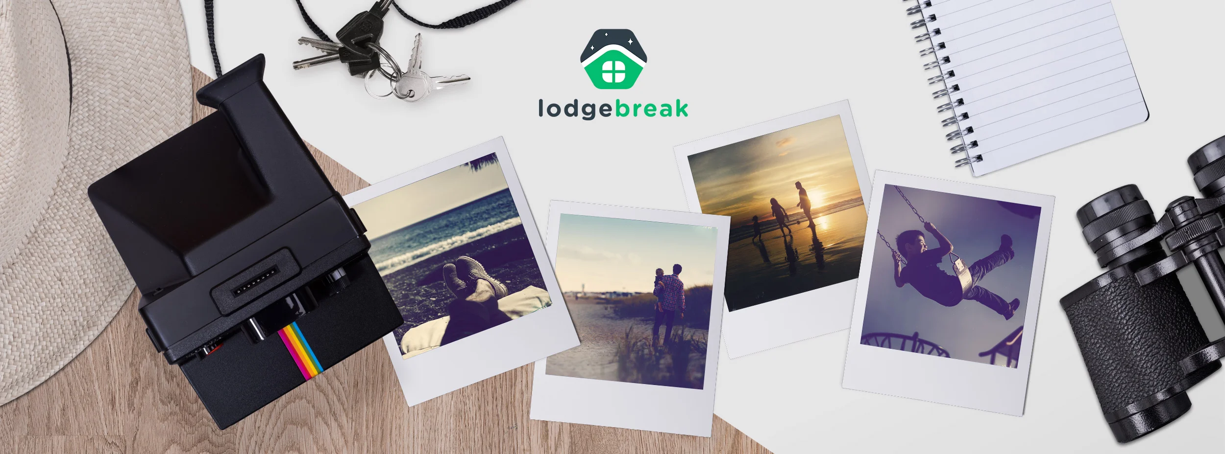 Logo design for Lodgebreak - a modern online holiday comparison website - featuring lodges, holiday homes and nights under the stars in hot tubs. Set out to helping customers decide where and when to go on holiday in order to get the best deal